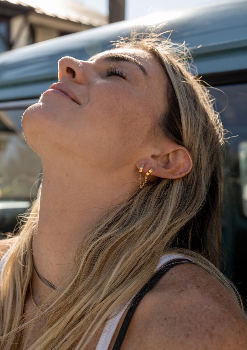 The Design: Grayton Chained Double Gold Hoop Earrings