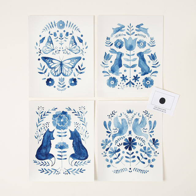 4 Folk designs on 8”x10” (140 lbs) watercolor paper