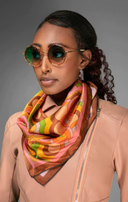 Description:  Timeless style and creativity meet in Nuvula’s silk scarves. Handcrafted in super soft satin, this new Nuvula print development takes inspiration from old designs, culturally rich patterns, and futuristic color palettes to create a beautiful amalgam of art patterns. A perfect piece for a night out or wear to the beach!